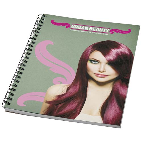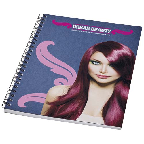 Add some bold colour to your notes with this A5 spiral notebook. It includes 50 sheets of blank 80 g/m2 recycled paper and a 320 g/m2 card front cover in a choice of colours. You can customise the pages of this versatile notebook with any design – so whether you want lined paper, squares or dots – anything is possible! Manufactured using responsibly sourced materials. Made in the UK.