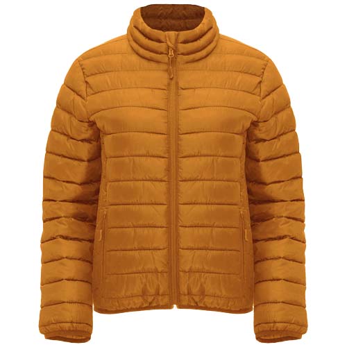Women’s quilted jacket with feather touch padding. Inverted zippers with matching chin protector and puller. Two front pockets with zippers. Matching elastic edging in collar, cuffs and hem. Contrasting inner lining. Includes stow carry bag. Lightweight and foldable garment. Fitted cut. Removable label. Water resistant. Wind-proof. The model is 179 cm and is wearing size S.