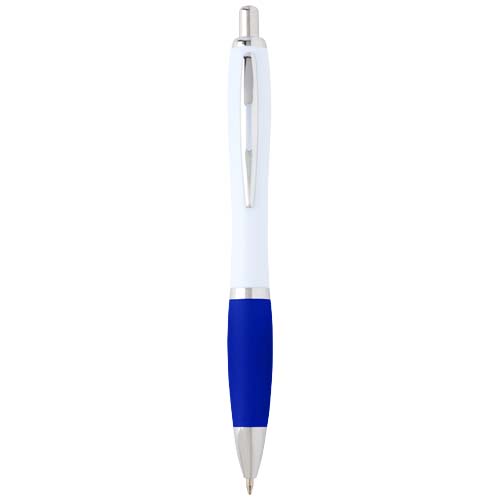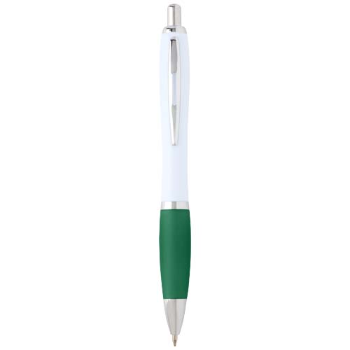 The Nash ballpoint with a stylish curvy design and a soft grip is made of recycled plastic that is hard and solid and thus offers a long life span. Ink colour: Black. Writing length: 1000 metres. Nib size: 1.00 mm.