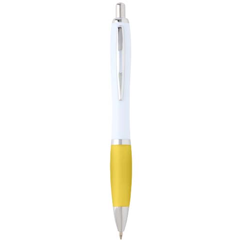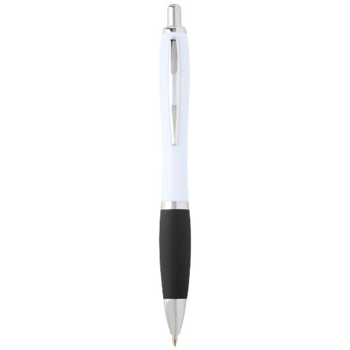 The Nash ballpoint with a stylish curvy design and a soft grip is made of recycled plastic that is hard and solid and thus offers a long life span. Ink colour: Blue. Writing length: 1000 metres. Nib size: 1.00 mm.
